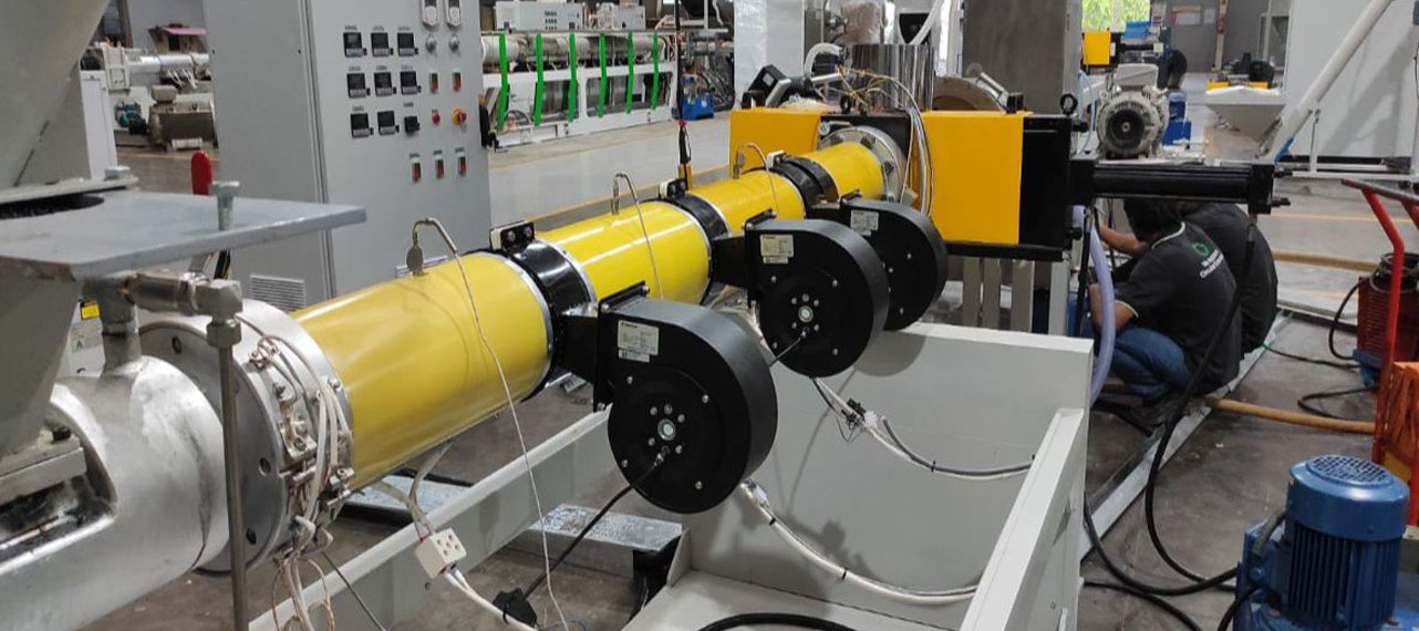 The barrel heating system uses electromagnetic induction – a well-known principle used to heat large industrial furnaces, special machines for injection molding molten metal, thermoset molds and some Japanese hot-runner nozzles. However, it is a new concept for heating barrels of extruders. The system, introduced by Jay-Kay, turns the steel barrel itself into a resistance heater by generating electrical eddy currents in the metal near the outer surface of the barrel tube. Those eddy currents are induced by electrical current passing through a cable wrapped in a continuous coil around the barrel but not touching it.